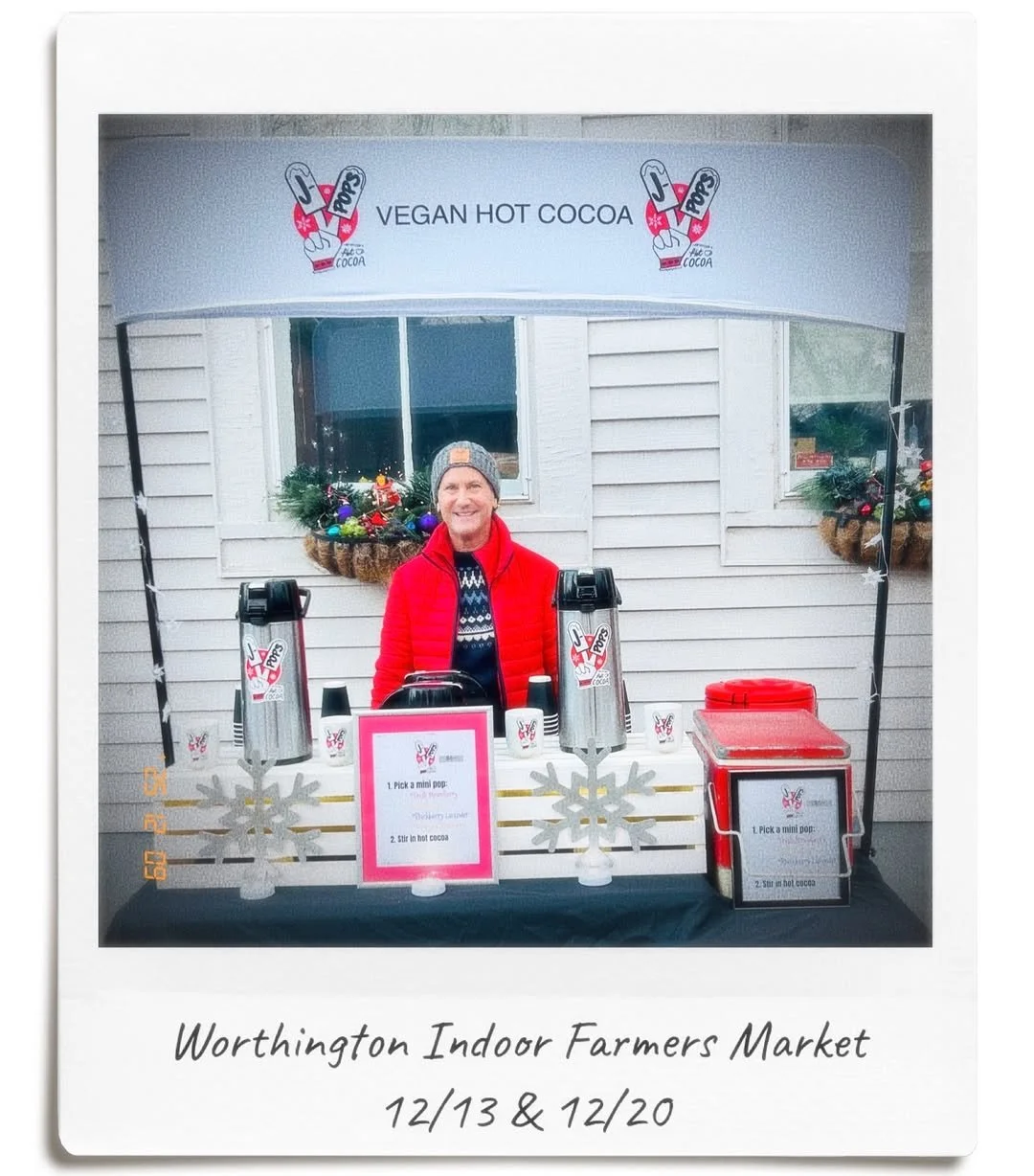 We’ll be POPin’ up indoors @worthingtonfarmersmarket this Saturday,12/13 and next Saturday, 12/20. Pop by and get our seasonal pop infused (vegan & handcrafted) hot cocoa while supplies last!