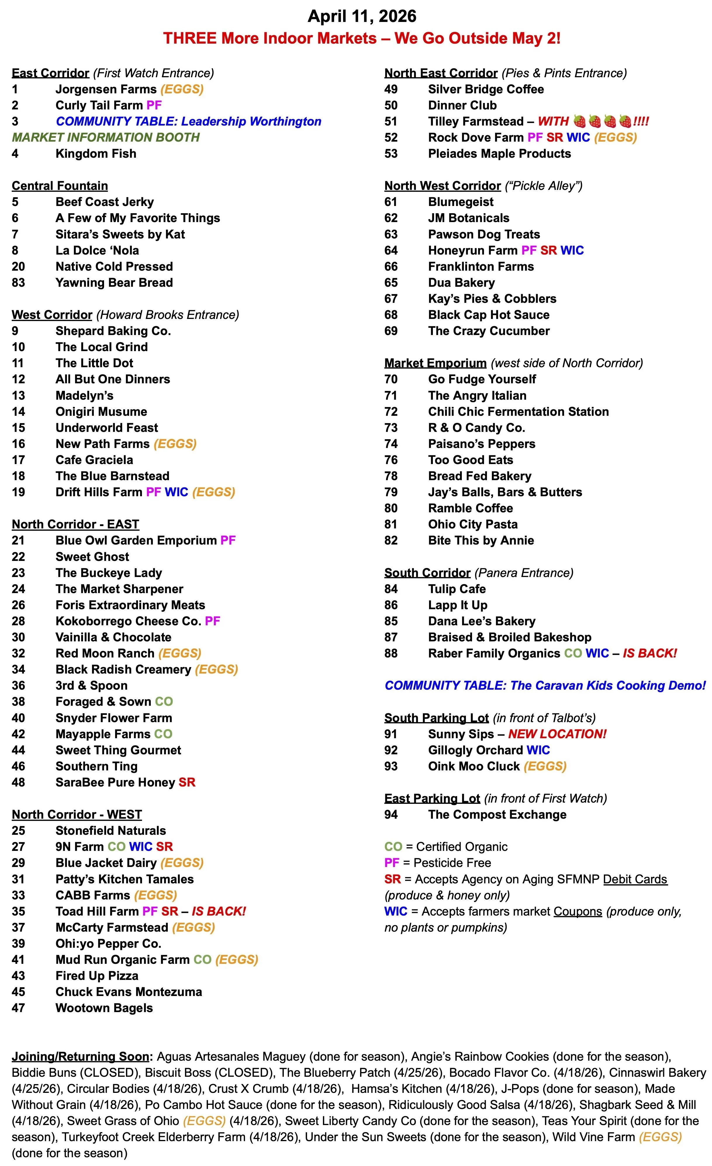 THREE more indoor markets. Outdoor season begins May 2!
