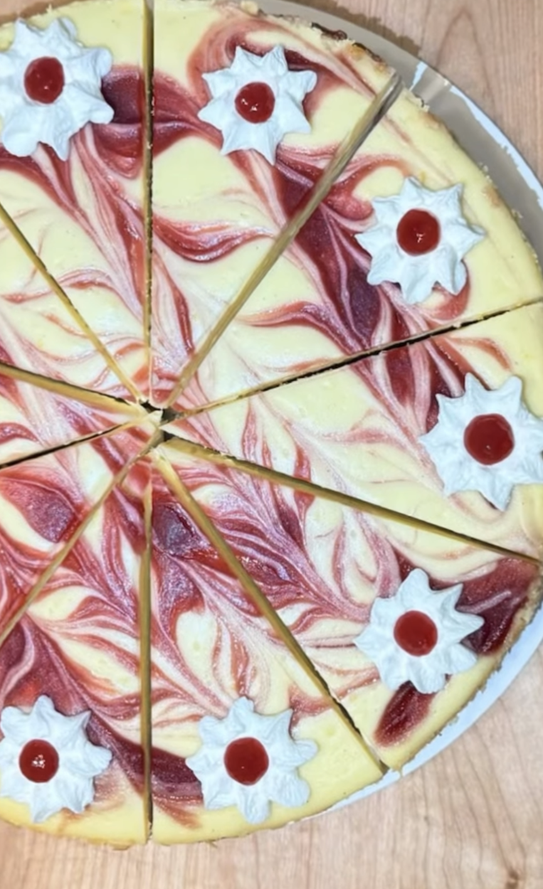 Our Lemon Raspberry Cheesecake is a smooth, creamy cheesecake with a refreshing lemon touch, paired with a vibrant raspberry swirl that adds just the right amount of sweetness and tang. Every bite is light, silky, and full of spring flavors.