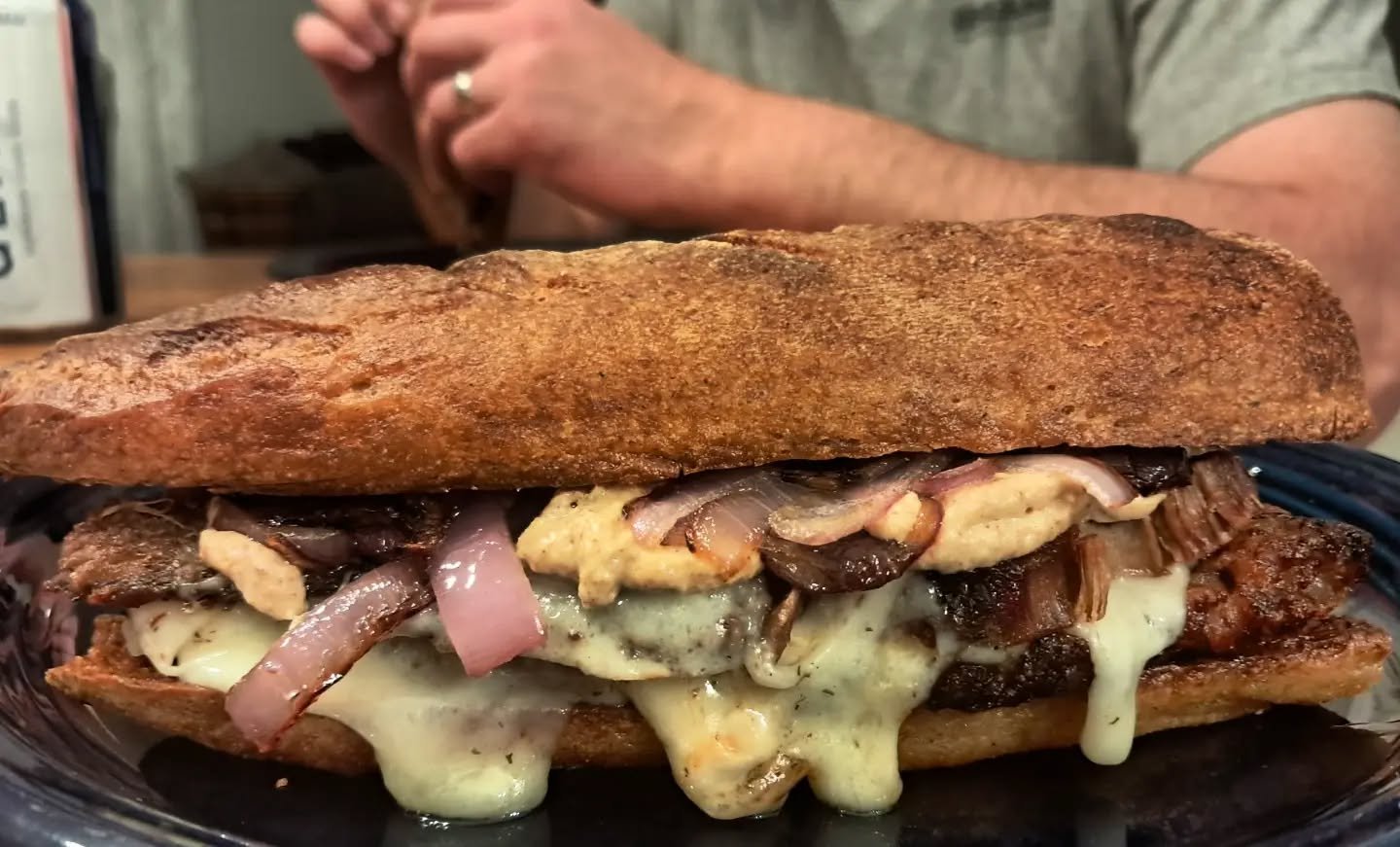 Proof that simple ingredients don’t have to be simple. Our smoked chuck roast, melty dill fontina cheese, caramelized red onion, spicy brown mustard all between a grilled gluten-free baguette from Braised and Broiled Bakeshop.