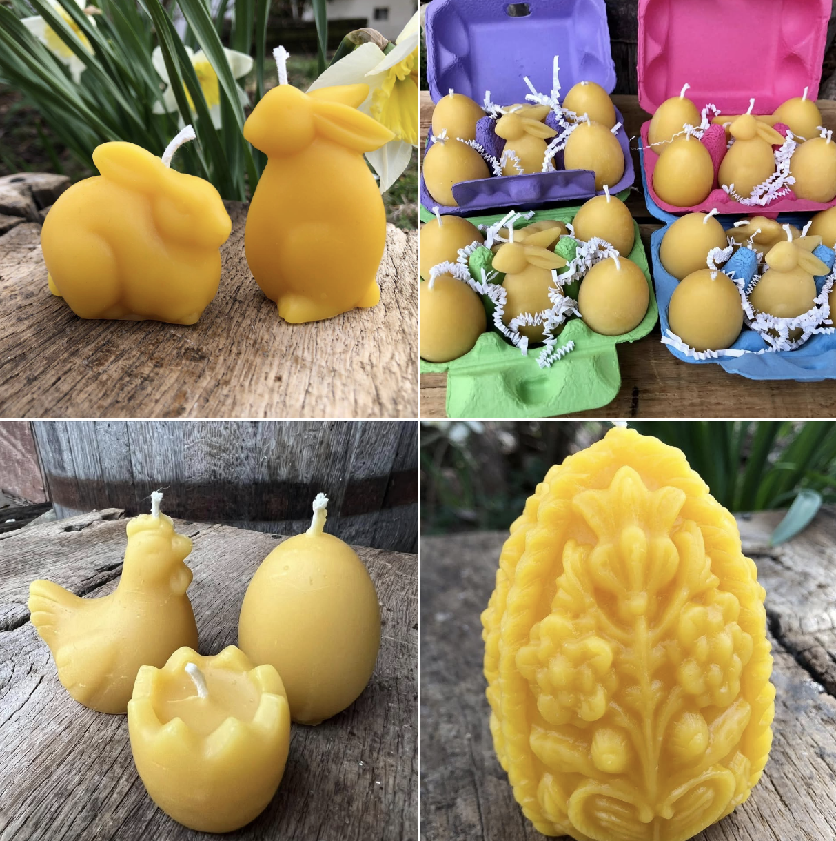 We have some fun candle ideas for your Easter baskets. https://www.honeyrunfarm.com/beeswax-candles