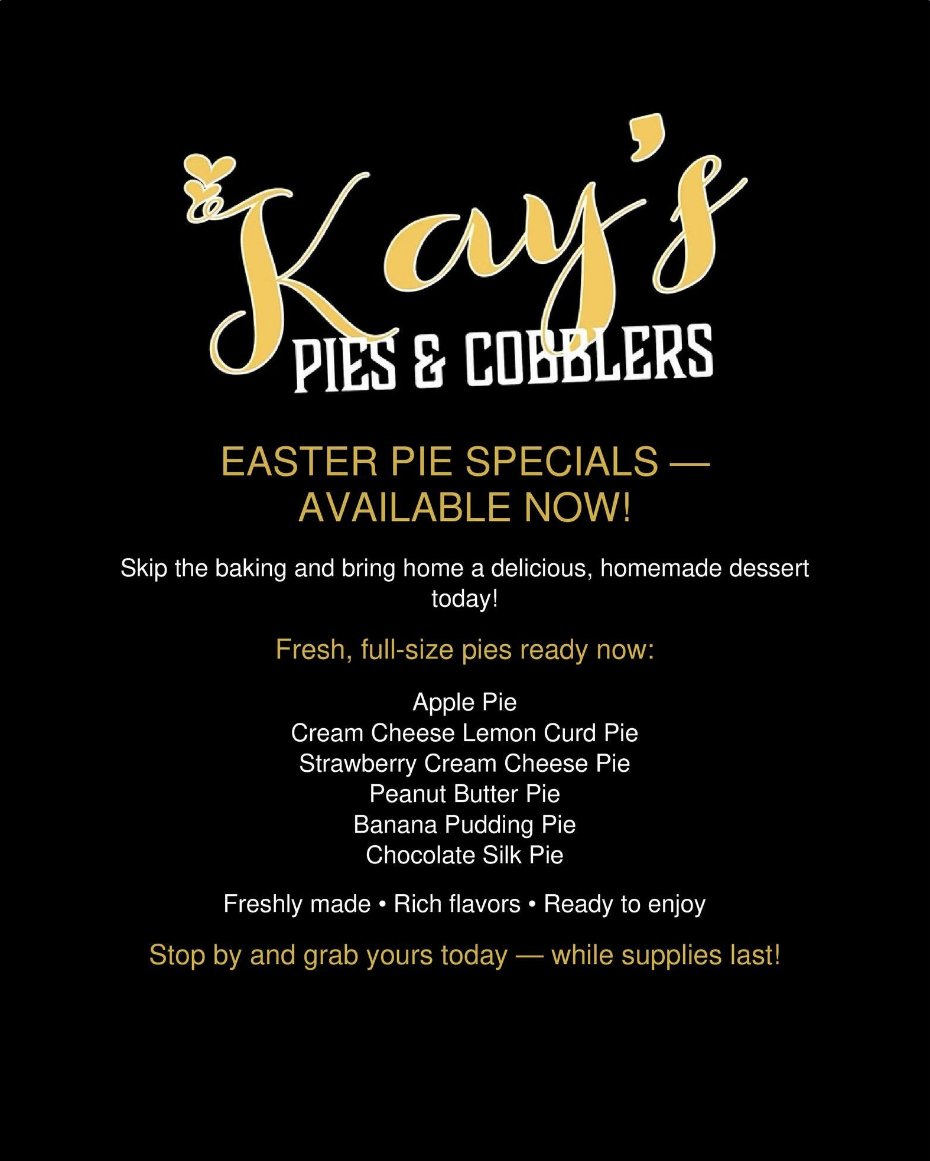 Kay’s Pies & Cobblers, Booth #67, Northwest Corridor