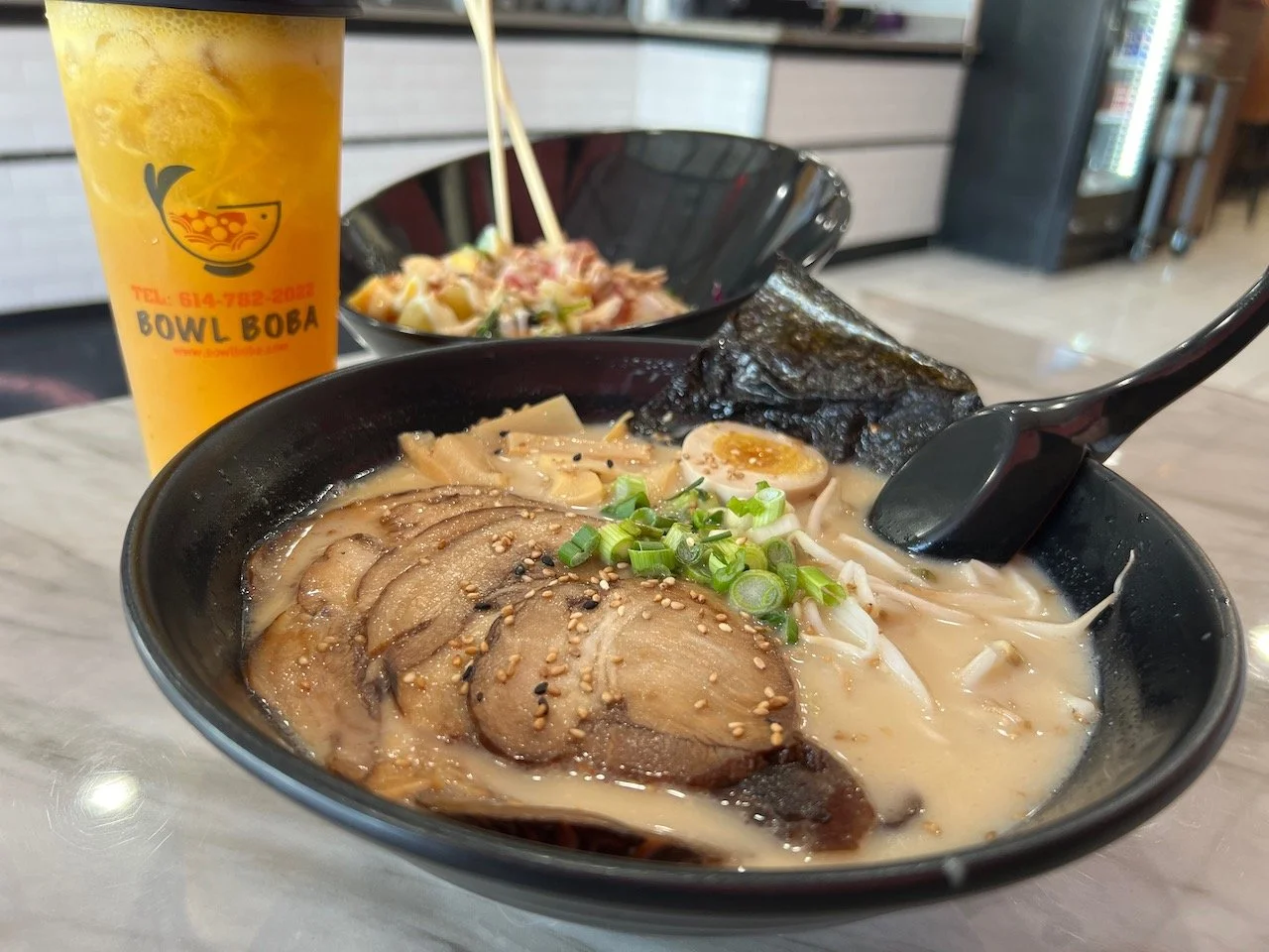 Bowl Boba, a small local chain offering a variety of bowls, ramen, and tea, recently joined the plaza next to Worthington Park Library!